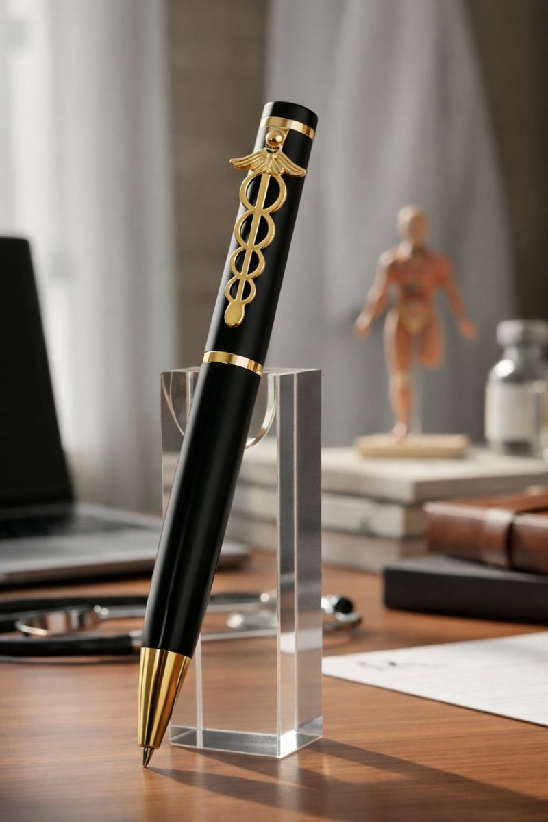 This pen is designed for medical professionals with a sleek black and gold finish. A stylish, smooth-writing pen ideal for gifting, clinics, and conferences.