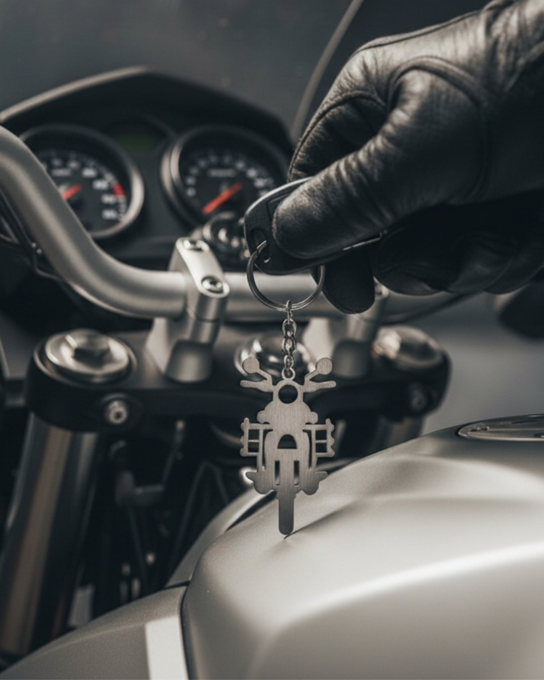 A rugged and stylish motorcycle-shaped keychain crafted for enthusiasts who ride with pride. Its durable build and bold design make it a perfect accessory for bikers, collectors, or as a gift for Bullet lovers.