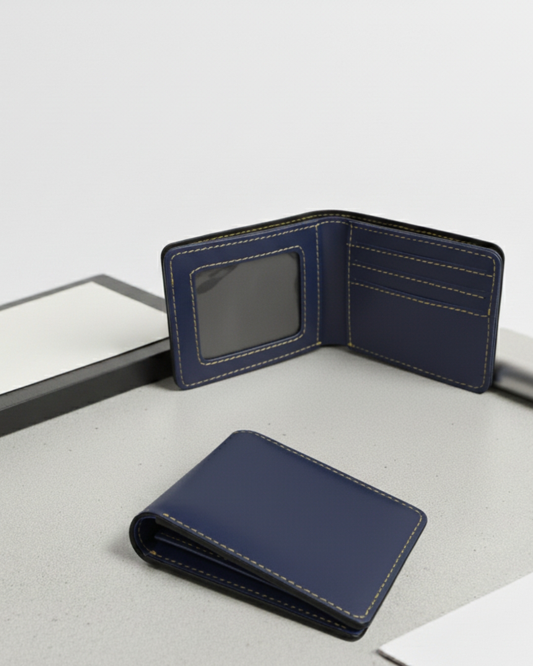 A sleek faux leather wallet designed for everyday convenience. Featuring multiple card slots, a transparent ID window, and contrast stitching, it blends style and utility for modern professionals and travelers.